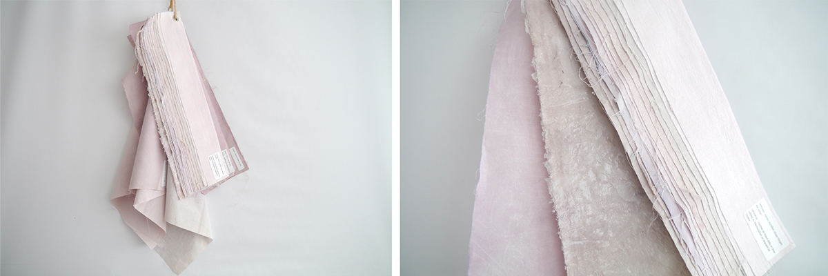 Teintures naturelles à l’avocat et aux oignons sur coton et tissu rose Tessellation Canadian smocking et feuilles de rhodoïd Enductions de silicone, de sac plastique Lamination d’aluminium, de cuir avec thermocollant